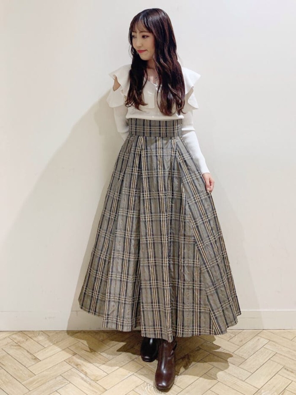 airi(dazzlin)のスカート「メモリータフタバックレースアップチェックスカート」を使ったコーディネート