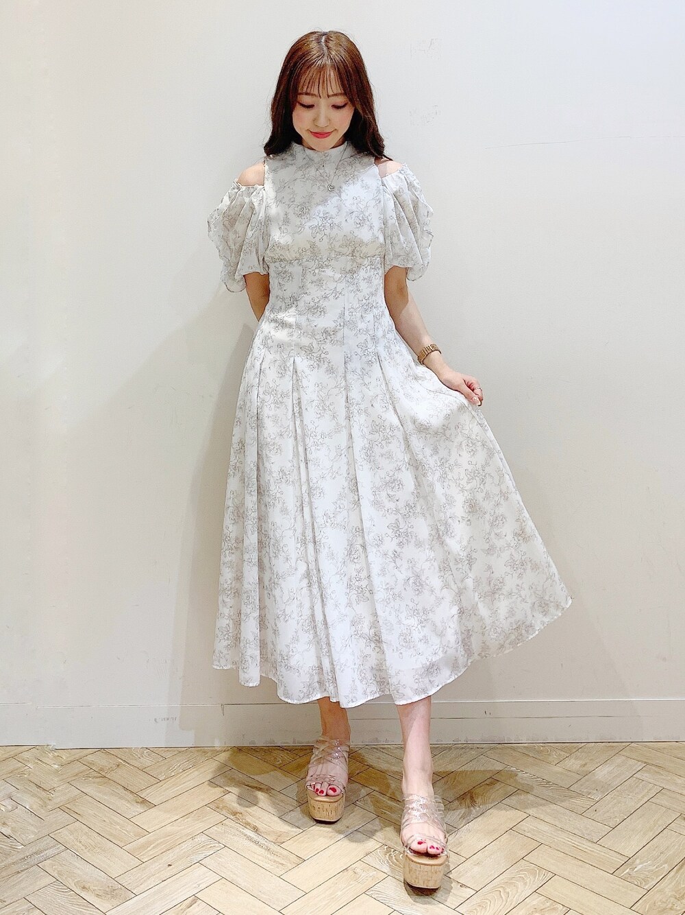 airi(dazzlin)のワンピース「トワルドジュイ2WAYショルダーワンピース」を使ったコーディネート