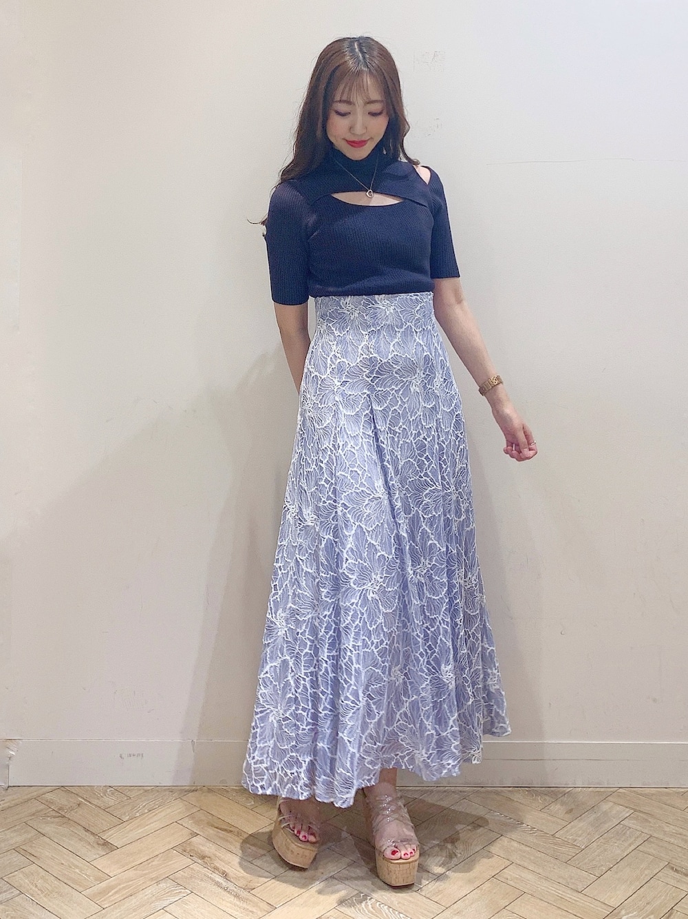 airi(dazzlin)のスカート「フラワーレースハイウエストフレアスカート」を使ったコーディネート