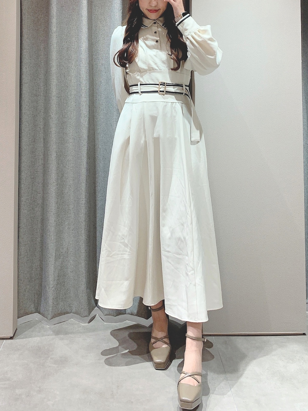 airi(dazzlin)のワンピース「バイカラーラインシャツワンピース」を使ったコーディネート