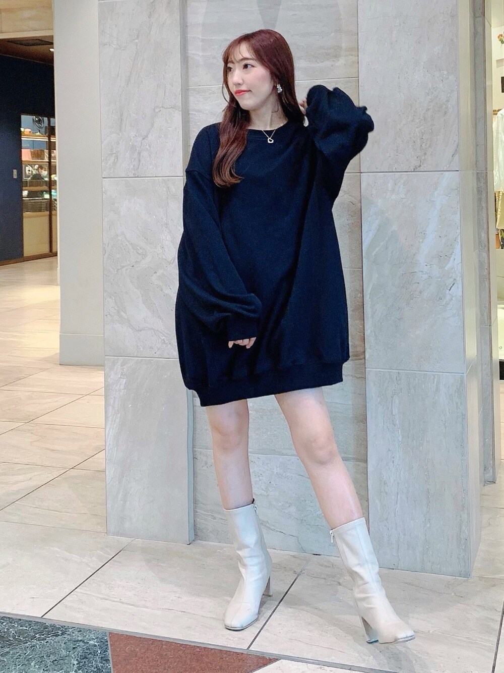 オーバーワンピのカジュアルコーデ︎︎︎︎︎! ワンピース バックロゴが可愛いオーバーシルエット︎︎︎︎︎♡ 160cmでも一枚で着れる丈感なので、ワンピースとしても🙆♀️ ロングスカートやミニスカートと合わせても相性抜群です︎︎︎︎︎☺︎ ブーツ 24.5cm Lサイズ着用 つま先が少し細身なスクエアトゥブーツ! ヒールは8cmありますが、安定感があるので 1日履いていても足が痛くならない優秀ブーツ