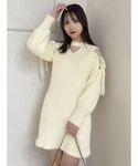 冬のフェミニンコーデ⛄️🤍 ワンピース 肩部分は透け感があり肌見せとショルダーリボンが あざと可愛い♥ シャギーニットなので、チクチクしないので、 肌が弱い方でも安心です✨ ニットですが、ラインを拾わないのも嬉しいポイント︎︎︎︎︎☺︎ シューズ 24.5cm/Lサイズ スクエアトウなので、大人っぽく スタイリングが決まります!! ヒールは8cmありますが、太めのヒールなので 安定感がありとても歩きやすいです🤍