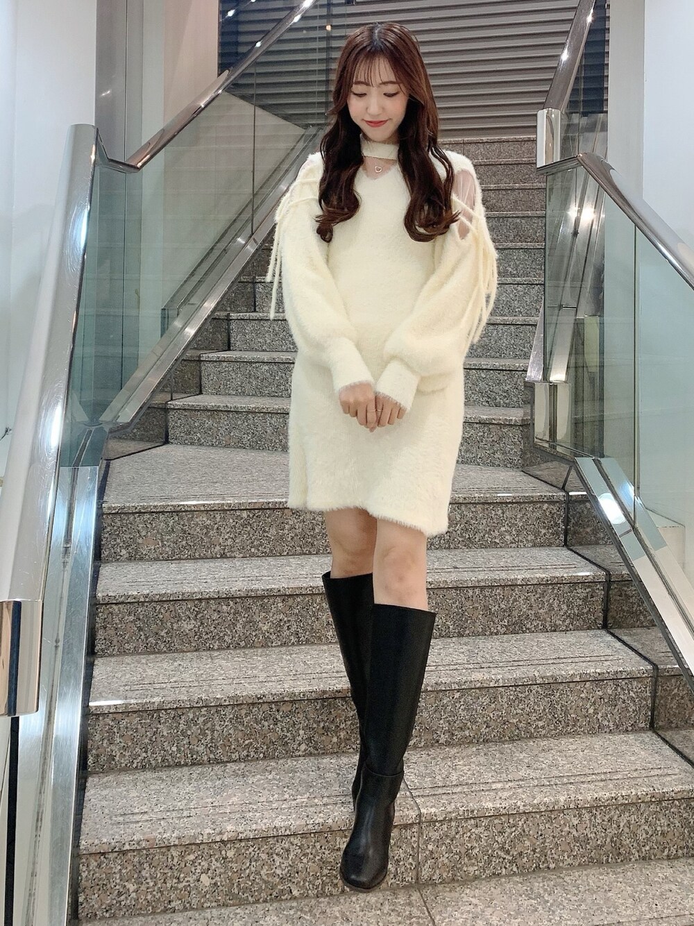 airi(dazzlin)のブーツ「スクエアトウロングブーツ」を使ったコーディネート