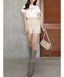 今期もトレンドなセットアップコーデ🍁 ジャケット 去年も大人気だったジャケット! カラバリが増え再登場しました!! レイヤード風デザインでトレンド感のあるジャケット︎︎︎︎︎☺︎ お袖にはファスナーが付いていて開閉するとスリットが入ったようなデザインに✨ その日の気分で着用可能です!! オシャレ度アップも間違いなし💎 パンツ ショートパンツですが、スカートシルエットで足回りがスッキリ見えるので、スタイルアップ効果抜群です🪄 ウエストはゴムなので楽ちんです! ブーツ 24.5cm/Lサイズ着用 定番のメッシュ素材のブーツ!! メッシュ素材なので春先まで使えるアイテムく ヒールは7.5cm! 太めのヒールなので安定感もあり歩きやすいですよ︎︎︎︎︎☺︎