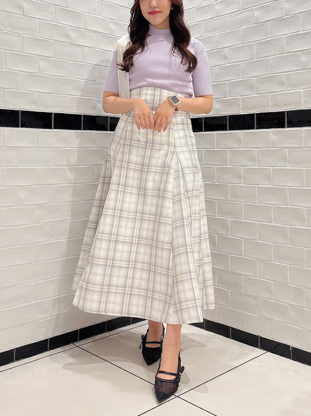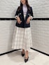 春らしい大人フェミニンコーデ🌷🌸 トップス 大人気トップスが半袖ver.で再登場!! リボンが取り外し出来る2WAY使用☺️ 程よい肌見せがあざと可愛くしてくれます🪞 スカート dazzlinの定番マイナス5キロ見えスカート♡ バックレースアップでサイズ感調整が出来るのでシルエットがとても綺麗に見えます✨ ジャケット 春の定番!マリンジャケット細身のシルエットなので、着痩せ効果抜群も裏地はストライプです。 パンプス 24.5cm/Lサイズ着用 ヒールは5.9cm。 華奢なリボンがサイドに施してありポインテッドシルエットなパンプス!