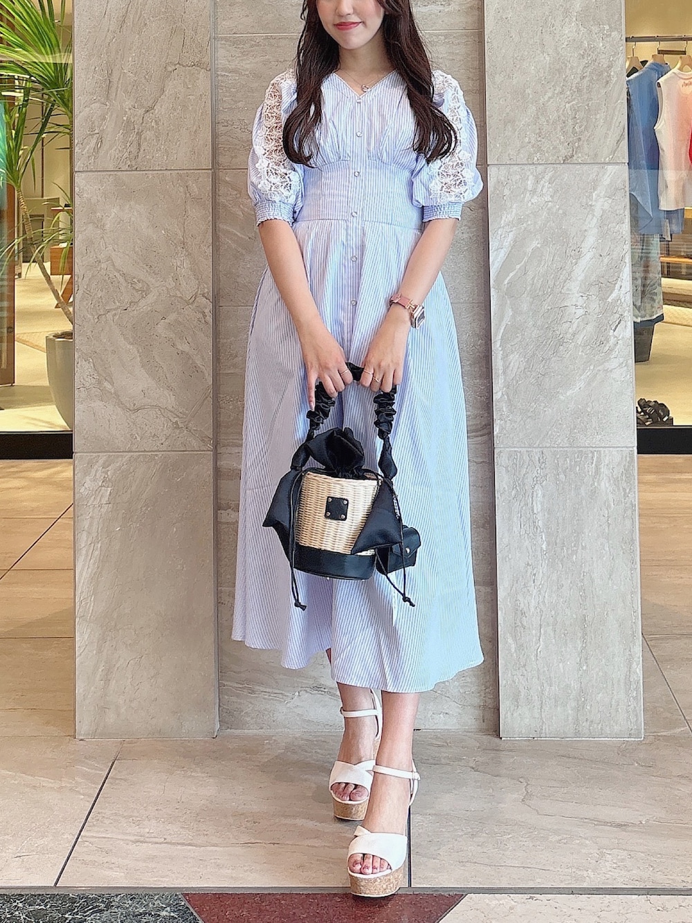 airi(dazzlin)のかごバッグ「リボンハンドルカゴバッグ」を使ったコーディネート