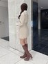 ワンピース ジャケットセットアップのように見えるドッキングワンピース!! 胸下切り替えなので、ウエストもスッキリ見えスタイルアップが叶います🪄 襟と袖口には配色の異素材を取り入れているのがさりげなく、華やかさをプラスにしてくれます💠 ブーツ 24.5cm/Lサイズ 細身のフィットするロングブーツなので、綺麗に見えます! ヒールは6.2cmありますが、安定感あるので1日履いていても足が痛くならない最強ブーツ☺️