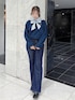 トップス シャツとボウタイをドッキングしたレイヤード風デザインのスウェットトップス! 襟元のシャツ、ボウタイ部分も全て取り外し可能なので、カジュアルでも使いやすく着回し抜群トップス🪄 パンツ 伸縮性があるデニムパンツなので動きやすいので1本もっているととても便利です!!! シューズ 24.5cm/Lサイズ ヒール8.5cm(サイズによりヒールの高さが異なります。) スクエアトゥと程よいヒールの高さなので、スタイルアップを叶えつつも安定感があるのでとても履きやすく歩きやすいです!