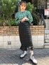 シャーリングスカートとフラワー2WAYブラウスのコーディネートです❤︎トップスのブラウスはリボンが前でも後ろでもどちらでも着れるブラウスになってます‼︎生地感もしっかりしていて手元のフリルやデイジー柄、ローズ柄がとっても可愛いアイテムです‼︎ スカートはシャーリングデザインがポイントのロングスカートです、156㎝で足首より上の丈感になっております☺︎ウエストもキツくないゴムで履きやすく全体的にも締め付け感もなく着心地の良いスカートです♪