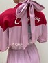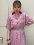 バックのロゴと薔薇の刺繍がポイントのボーリングローズワンピース❤︎ 付属のリボンは首に巻いてチョーカーにしても、ウエストに巻いても可愛くアレンジできます♪首元もスッキリしているのでお気に入りのアクセや、Tシャツやハイネックのトップスなどをレイヤードしても◎ ウエストが少しくびれているのでスタイルアップ効果もあり、一枚でワンピースで着るのはもちろん前のボタンを開けて羽織にもできます☺︎