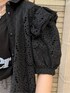 フリルショルダーコットンワンピースを羽織にしたコーディネート☺︎ 店頭でも大人気のワンピースは前ボタンなので私は羽織で着てみました‼︎ 肩や袖の大きめのフリルと、コットン生地がポイント◎もちろん一枚でも甘くなりすぎないシルエットで着ていただけます☺︎Tシャツはオーバーサイズのシルエットが可愛くて、着心地も抜群なアイテムです♪