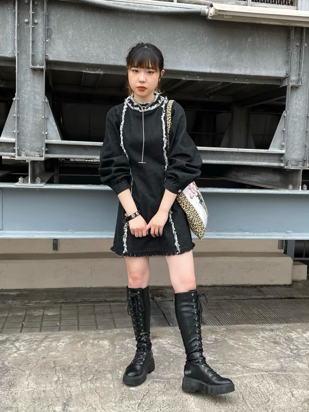 1枚で可愛いフリンジデニムミニワンピース❤︎ デニム素材の甘すぎないワンピースで、縦ラインと襟元のフリンジがポイント☺︎ウエストのベルトは調節可能でくびれラインも作ることができるのでスタイルアップ効果抜群‼︎スリーブもゆったりしていて、硬い生地のデニムではないので着心地も◎ ロングブーツと合わせれば簡単にjouetie コーデの完成♪トートバッグは容量も沢山入ります!肩から掛けられるのが使い勝手が良くて◎コーディネートのアクセントに❤︎