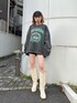 NFL PACKERSプルオーバーにウエスタンミドルブーツを合わせたコーディネート❤︎ コラボプルオーバーはとってもゆったりとしたオーバーサイズで、156センチの私でお尻もすっぽりと隠れる丈感です☺︎スリーブのサイズ感もとても可愛くて、トップスのシルエットを活かしてショートパンツやフィットパンツで合わせれば細見え効果や、体型のカバーができてしまうスタイルアップ効果抜群なアイテムです‼︎◎