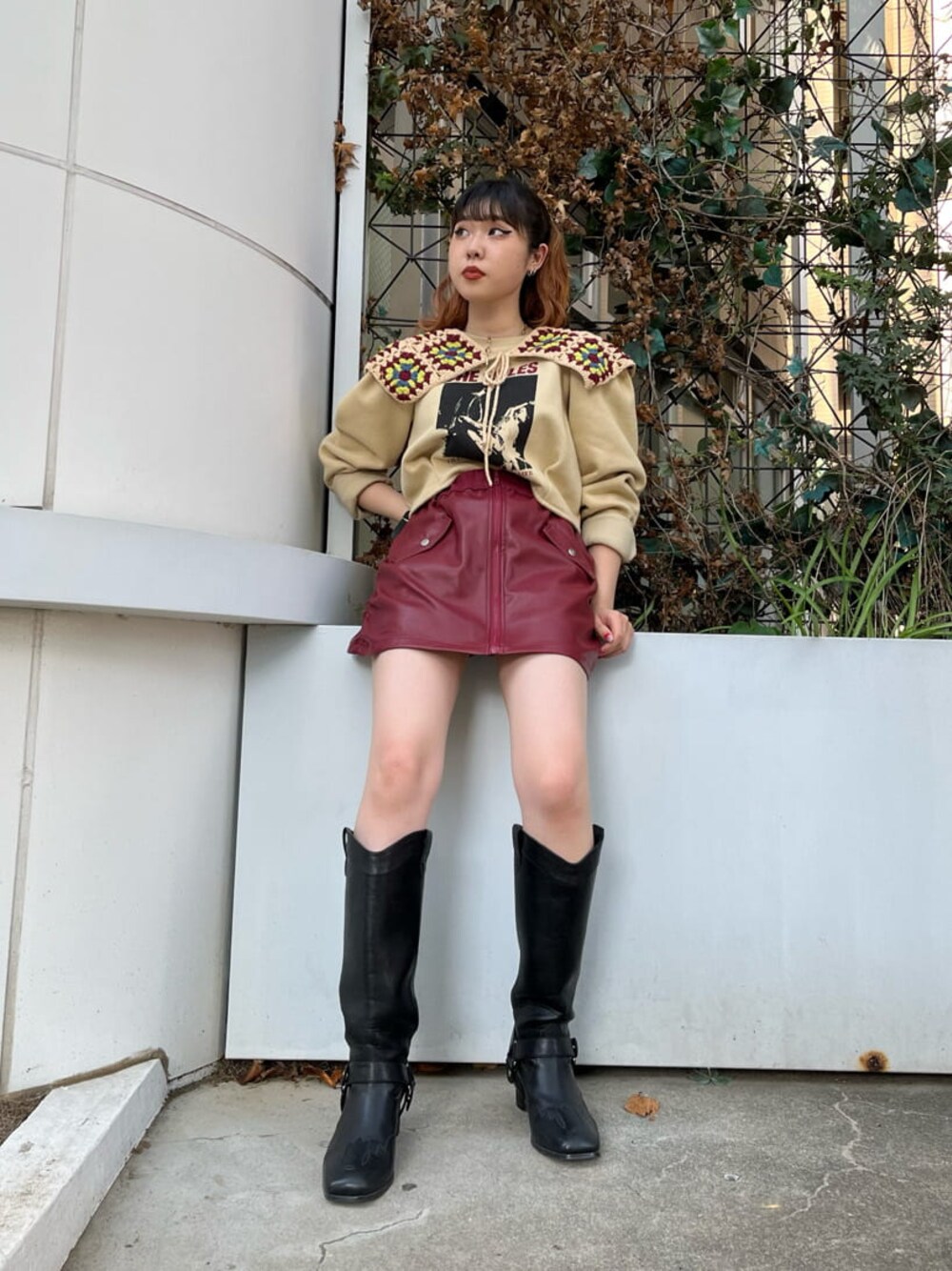 タックスリーブプルオーバーとMA-1スカパンのコーディネート❤︎ ショート丈のプルオーバーはどんなボトムにも合わせやすく、取り外し可能のクロシェのカラーが使い回せること間違いなしのアイテム☺︎ クロシェを取り外すとパワーショルダーのプルオーバーで、裏起毛になっているので暖かくきていただけます♪ボトムは中がパンツになっているので安心感もあり、寒い日でも暖かいです‼︎