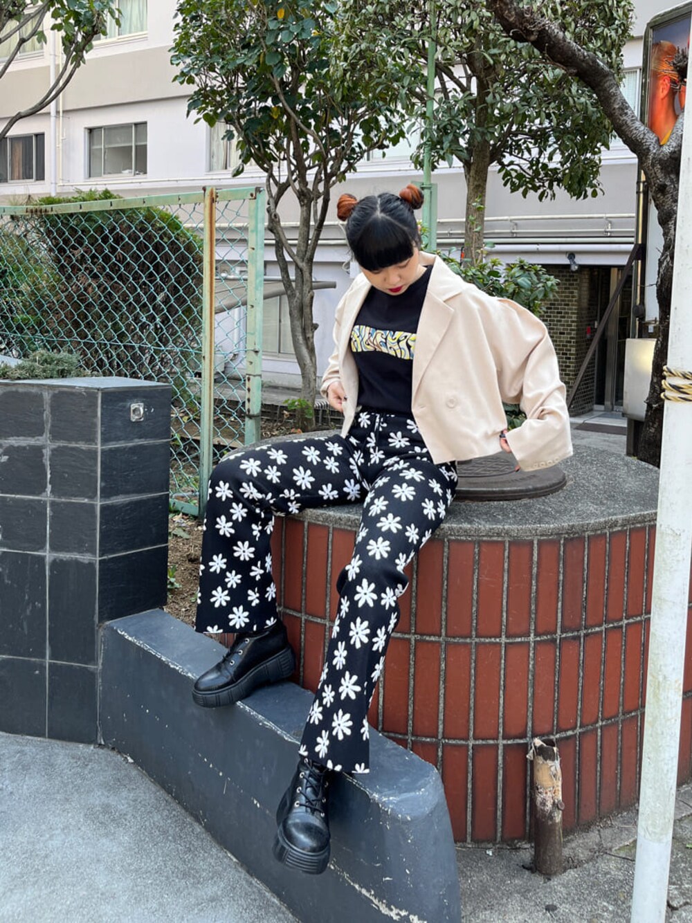 JURI(jouetie)のその他パンツ「レトロフラワーパターンサマーニットパンツ」を使ったコーディネート
