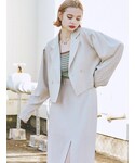 SETUPのパフスリーブテーラードジャケットを使ってコーディネート❤︎ スリーブのゆったりしたシルエットがとってもかわいいジャケット♪丈感もスタイルアップ効果抜群でハイウエストとのボトムとの相性◎デニムや、マーメイドスカート、ミニ丈のパンツなどいろんなバリエーションのボトムと合わせられるので着回し力抜群の春アウターとしても☺︎ マーブルロゴフィット Tシャツはjouetieでは珍しくオーバーすぎないサイズ感がインナーにちょうどいいアイテムです‼︎マーブル模様のロゴもポイントになるのでとってもおすすめです♪