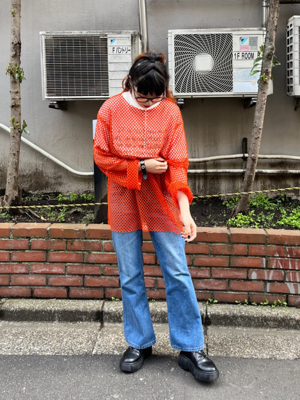 JURI(jouetie)のサングラス「ワイドフレーム伊達メガネ【くもり止め加工レンズ】」を使ったコーディネート
