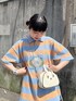 フロントの大きい刺繍が贅沢なトップス! jouetieらしい配色のボーダーに、刺繍は真ん中にJJマークが❤︎とってもルーズなサイズ感で156センチの私でもお尻もすっぽり隠れます!スリーブも肘くらいの丈でゆとりがあるので気になる二の腕も隠れて華奢見え効果抜群◎ ボーダーのカラーと合わせてボトムを選んだり、小物を合わせて統一感のあるコーディネートがおすすめです♪