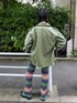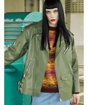 サイズ感ゆったりな裏地までかわいいライダースにボトムもグリーンのグラデーションでワントーン風に合わせて見ました❤︎ ライダースはカラーのバリエーションもおおく、グリーンは少し優しい印象で着ることができるので普段ワンピースや少し甘めなテイストが好きな方にもおすすめ◎裏地までこだわっています☺︎ ボトムはストレッチの効く、伸縮性のある素材で私の身長でソールが少し隠れるほどでした!あえてゆるゆるっと履けるのがかわいいポイントです♪