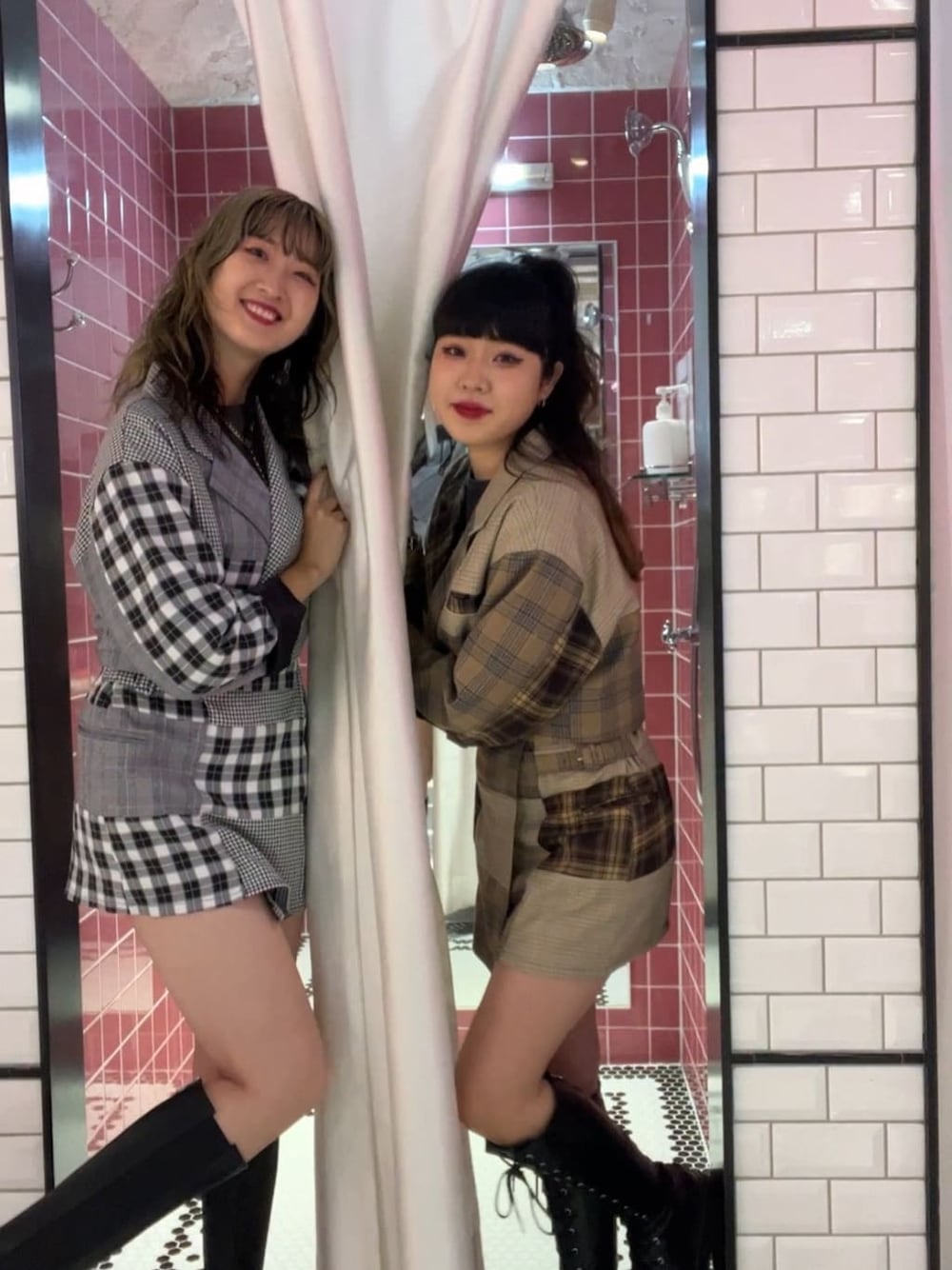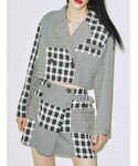 パッチワークのチェックのセットアップ❤︎ ジャケットはクロップド丈で、ロンTやワンピースに羽織っても!デニムやロングスカートを合わせても!長めのスリーブでロールアップするとサテン生地の裏地がかわいいのもポイントです☺︎ボトムはスカパンになっていてミニ丈でも安心して着用でき、ポケットもサイドについているので実用的、両サイドにベルトもついています!