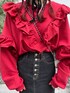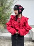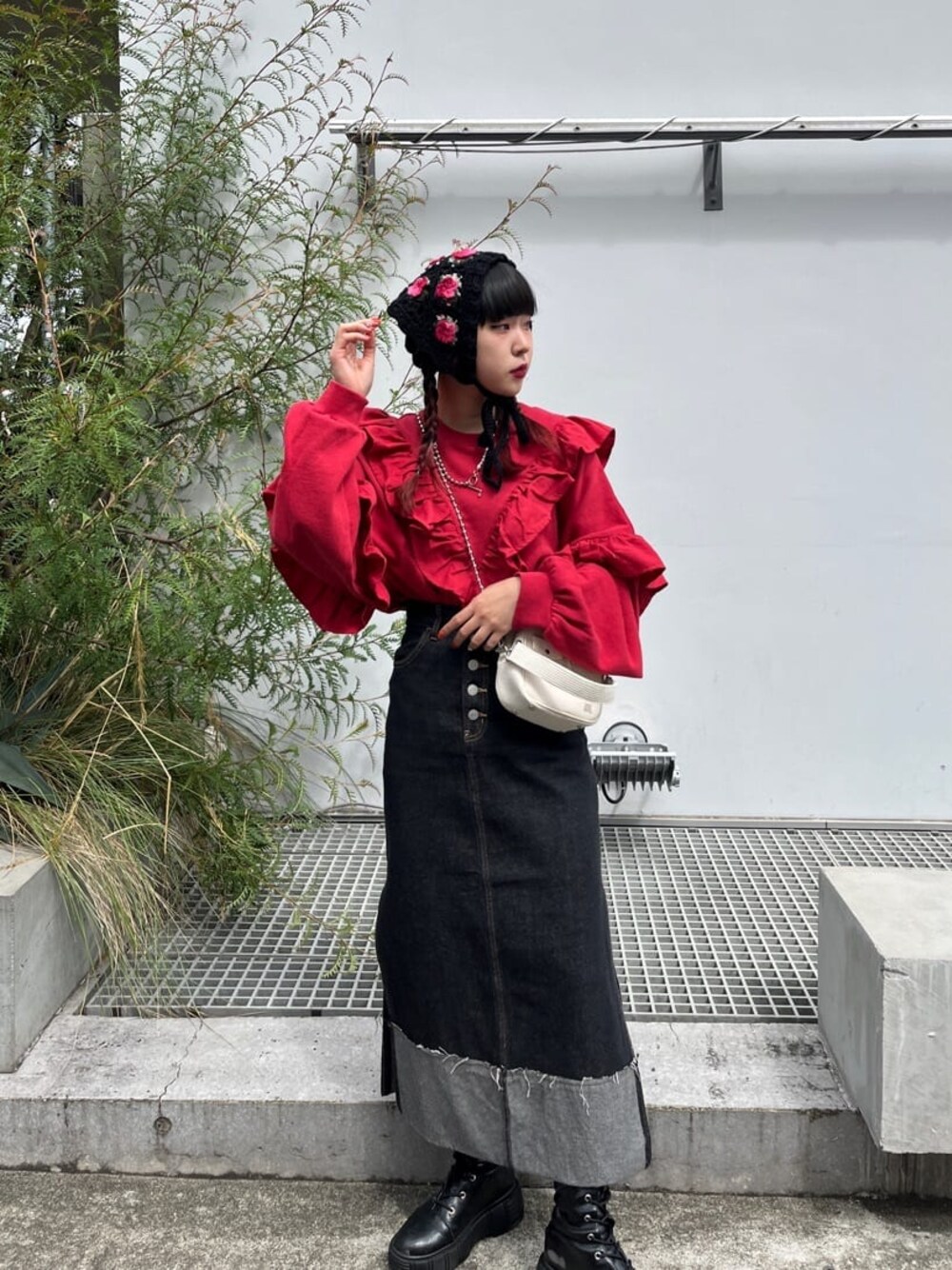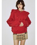 クロシェヘッドスカーフで秋らしさをプラスの甘め秋コーデ❤︎【トップス】たっぷりのフリルとスリーブのゆったりしたシルエットが毎シーズン大人気のプルオーバーボトムにインしやすい丈感にバージョンアップ☺︎【ボトム】デニム生地のロングスカートはサイズ展開も2サイズあり156センチでSサイズを着用しました。ストレートのシルエットも、ざっくりした両サイドのスリットですっきり見えます◎