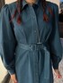 ワンピースコーデ❤︎しっかりした厚めのシャツの生地感のワンピース、肩のシルエットがお気に入りポイント◎付属のウエストベルトをしっかりめに閉めるとマーメイドスカートのシルエットに!ベルト有無でシルエットが変わるのでベルト無しでプルオーバーをレイヤードして襟を出してスカート風に着ても♪156センチで足首より上の丈感です☺︎