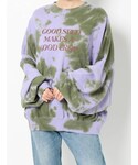 ロングMA-1を使ったコーディネート❤︎ 【アウター】オーバーサイズのゆったりとしたロングのアウター♪156センチでふくらはぎ中間くらいの丈感なので低身長さんにもおすすめ、スリーブのギャザーディテールで見え感がとても可愛くて、ゆったりしているので大きめトップスもすっぽり入ります!!【トップス】タイダイ模様のゆったりしたプルオーバー、ボトムインで着用しましたが一枚でお尻が隠れる丈感です♪