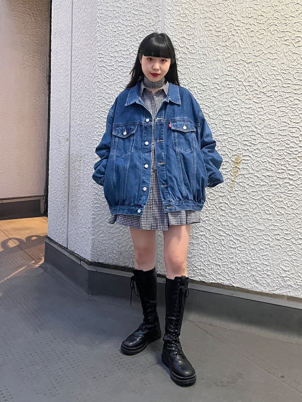Gジャンコーデ【アウター】まったりとしたシルエットとズルっとしたスリーブのシルエットが可愛いアイテム、オーバーサイズでインナーが分厚くてもゆったりと着れます!【チュニック】ミニワンピでも羽織でもマルチに使えるチュニック。シャツ素材でサラッとしているのでオールシーズンレイヤードコーデで活用できます♫