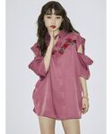 シャツコーデ【トップス】胸元のたくさんのバラの刺繍が贅沢なアイテム♪各色ごとに刺繍の糸の色も違います☺︎156㎝で一枚でも着用できるサイズ感ですがさらっとした生地感なのでボトムインも◎肩のボタンで2WAY活用できます!【ボトム】裾のドローコードでシルエットが変更可能、後ろにはスリットも入っていてもすっきりと着用できます☺︎