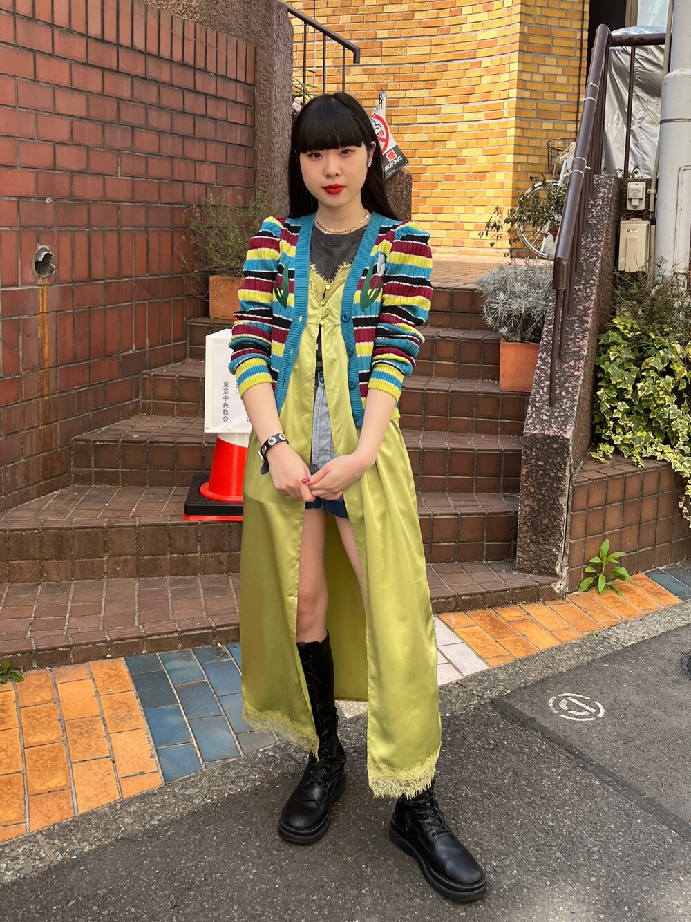 レイヤードコーデ【ワンピース】ランジェリーキャミワンピースはレースやボタンなど隅々まで可愛く、ざっくり入ったスリットにレイヤードコーデが楽しめるアイテムです♪【ブーツ】柔らかいレザーで靴擦れしにくく低めの平なソールで足も痛くなりにくいです!
