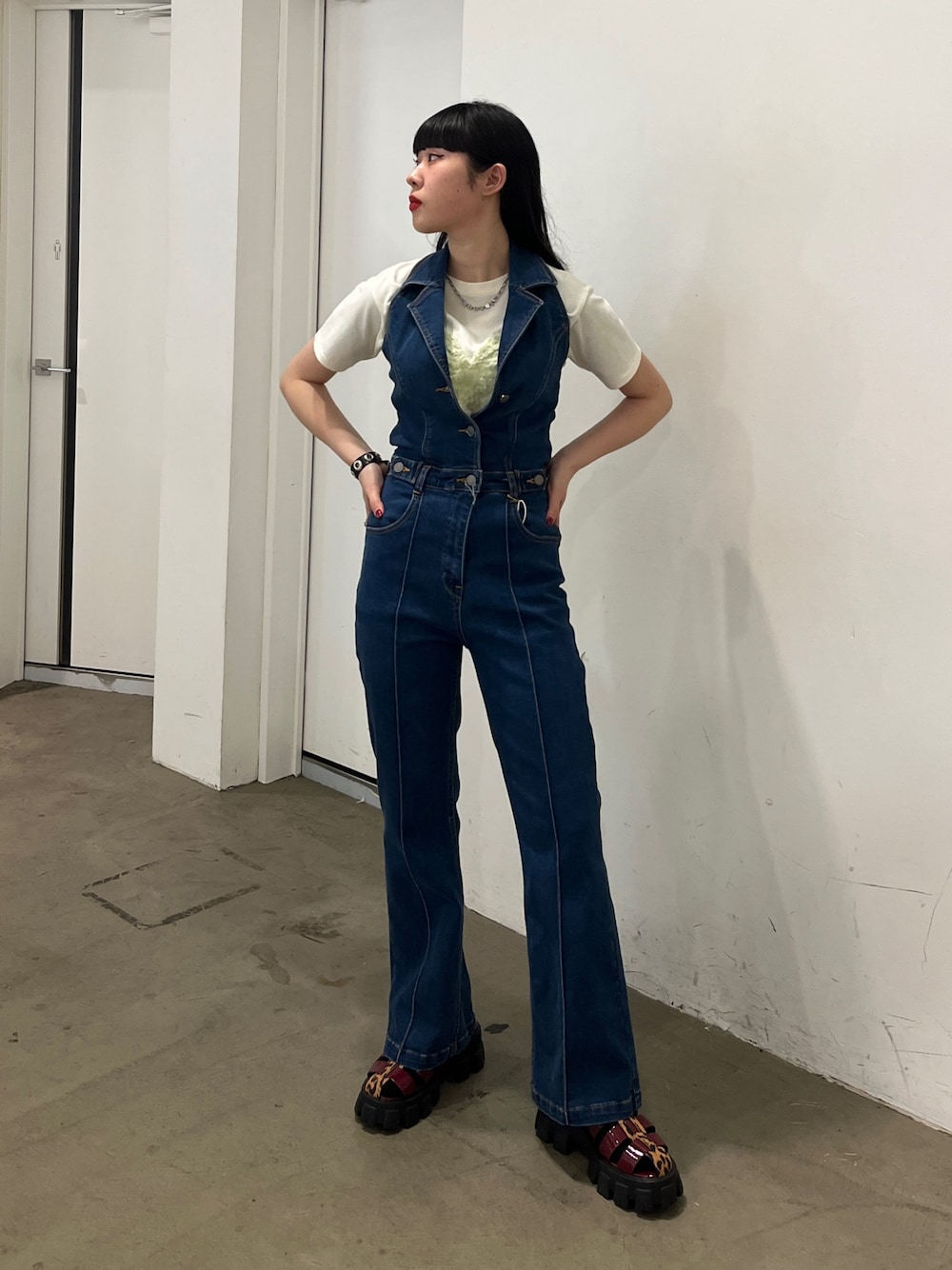 JURI(jouetie)のつなぎ/オールインワン「オープンカラージャンプスーツ」を使ったコーディネート