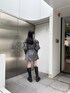 ジャケットワンピコーデ ゆったりとしたスリーブは、リボンで縛ってシルエットの変更が可能♪広めなので秋物のトップスもレイヤード可能◎キャミソールでデコルテを見せてキレイめに☺︎タートルやTシャツなどを合わせても可愛いです!ロングブーツで綺麗すぎないようにミックスコーデに♪