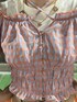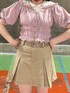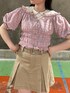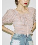 ガーリーミックスコーデ【トップス】通気性のある薄目の生地感、大きめのパフスリーブ、ウエストのシャーリングがスタイルアップさせてくれます♪胸元のリボンは普通に前で結んでも、2パターンでたのしめます!【ボトム】インナーにパンツがついたスカパン、プリーツではなくタックになっているのでガーリーすぎずに着用できます!