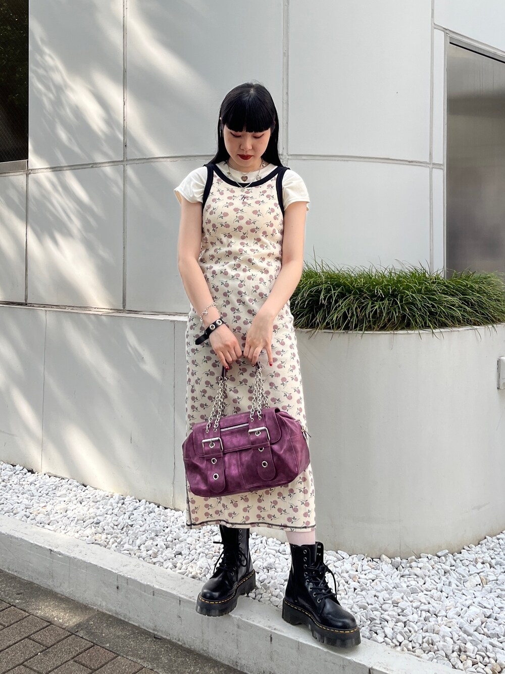 ワンピースコーデ【ワンピース】薔薇のオリジナルパターンがかわいいコラボのアイテム♪後ろにざっくりスリットが入っているのでストンとした落ち感でもすっきり見えます!ストレッチの効いた素材で締め付け感はなく、インナーを入れることも可能です!【バック】大きめサイズでお出かけのお荷物が多い方や、暑い日に飲み物もすっぽり入るバック。ショルダーでもハンドバッグでも使えます!