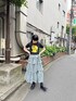 ロングスカートコーデ【トップス】コンパクトなサイズ感でストレッチ感のあるアイテム、丈も短めになっていてハイウエストボトムと合わせるとスタイルアップ効果◎ 【スカート】大人気のティアードのロングスカート、あえて切りっぱなしになっていてヴィンテージ感が出て甘くなりすぎないのでミックステイストにおすすめです!