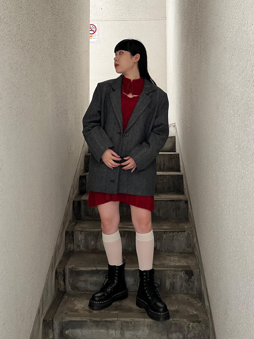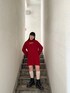 ミニワンピースコーデ 【ジャケット】 四角いシルエットがベーシックで使いやすいアイテム、どれもしっかりした生地感でかっちりとした見え感なのでさまざまなシルエットのボトムで合わせてミックスコーデがおすすめ! 【ワンピース】 薄いニット素材で秋にぴったり、綺麗めでスリーブはもったり大きく首元のレースアップもポイント♪かわいいディティールの詰まった一枚です!