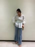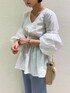 バルーンスリーブが特徴のブラウス!デコルテが綺麗に見えるVネックに、バックにはリボンがついている女性らしいアイテムです。比較的ゆったりとしたシルエットですが、ウエストマークがしっかりとついているのでメリハリがあります。またリボンで隠れていますがウエストがゴムになっているため着心地も楽です。デザイン性に優れているためシンプルなパンツスタイルがおすすめ。どんなトップスにも相性抜群のフレアパンツ!センターの切替が脚長効果◎。落ち感のある生地なのでスッキリ着て頂けます。毎年大人気のクリアパンプスは春夏のファッションに大活躍間違いなし!足元に抜け感があると全体のバランスが良く綺麗に見えるのでお勧めです。