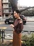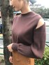 ショルダースリットが特徴のニット!さりげない肌見せなので普段オフショルダーなどを着ない方も挑戦しやすいアイテムです。また首元は詰まりすぎてないためマスクをしていても重たく見えずに着れます○。何にでも合うので着回したくさんできちゃいます‼︎ スカートのくるみボタンが可愛いのでトップスはインしました。サテンスカートは光沢感があることで軽やかな印象で上品に着れるのでおすすめ。オールシーズン着れるので、春夏はブラウスやTシャツに、秋服はパーカーや大きめニットと合わせてみて下さい。
