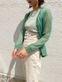 ノースリブニットのインナーと、シアーのニットカーディガンのアンサンブルアイテム。今年トレンドのシアーになっているカーディガンは清涼感あり、春夏に大活躍します!それぞれ違う組み合わせでも使えるので、様々なスタイリングを楽しめます。カーディガンはよく見ると小さなラメが入っているのでシンプルすぎずアクセントになって可愛い♡ ハイウエストデザインが女性らしいデニムパンツは、程よいストレートシルエットで履きやすく、デニム特有のつっぱり感もないので着心地抜群!今回はよりスッキリとした印象で着るためにベルトなしで着用しました。 パンプスも抜け感が出るようクリアなものを合わせ、春夏らしいスタイリングにしました。