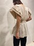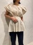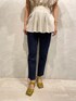 袖から身頃にかけてのフリルディテールが女性らしいデザインブラウス。粗野な素材を使用し、どなたでも着やすいようにしています。 ボトム次第で女性らしくもモダンにも着こなせるアイテムです。袖が長く肩が落ちているので肩幅が気になる私でも着やすい一枚!気になる二の腕もすっぽり隠してくれるので安心です♡ ストレートデニムパンツと合わせるとカジュアルに、でも少し女性らしく着ていただけます。 ストレッチ性もあり、ストレスフリーで履き心地も抜群なデニムは、計算されたシルエットで美しく、デイリーに履ける一枚になってます。足元はピスタチオカラーが可愛いサンダル。普段なかなか色みを着ない方けど挑戦してみたい、、、という方はまず足元から足してみるのがおすすめです!