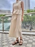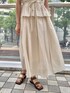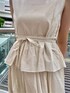 ペプラムデザインが特徴のワンピース!インナー付きなので白でも下着が透けることなく安心して着ていただけます。 背中が空いていることで後ろから見た時もおしゃれ!抜け感もでて、ボブヘアな方やポニーテールなどで顔まわりスッキリ見せる髪型がとても合います! アイボリーのワンピースだと比較的甘くみえるので、ヒール無しのサンダルでカジュアルに合わせました。少し肌寒い時期にはカーディガンを羽織って着て頂くのがおすすめです!