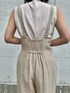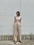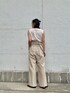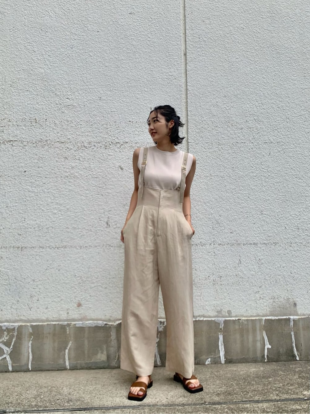 ラグナムーン定番の大人気ニット!接触冷感の素材なので真夏でもストレスなく涼しく着れるニットです!どんなスタイリングにも合うので一枚持っていると安心。2色買いされる方も多いですよ♪ ハイウエストなのでスタイルアップが叶うワイドパンツ。ヒップから足にかけて細く見えるようなほどよいストレートラインになっています。 ワントーンにまとめたことでサスペンダーがついていても子供っぽく見えずこなれ感がでるスタイリングにしました。