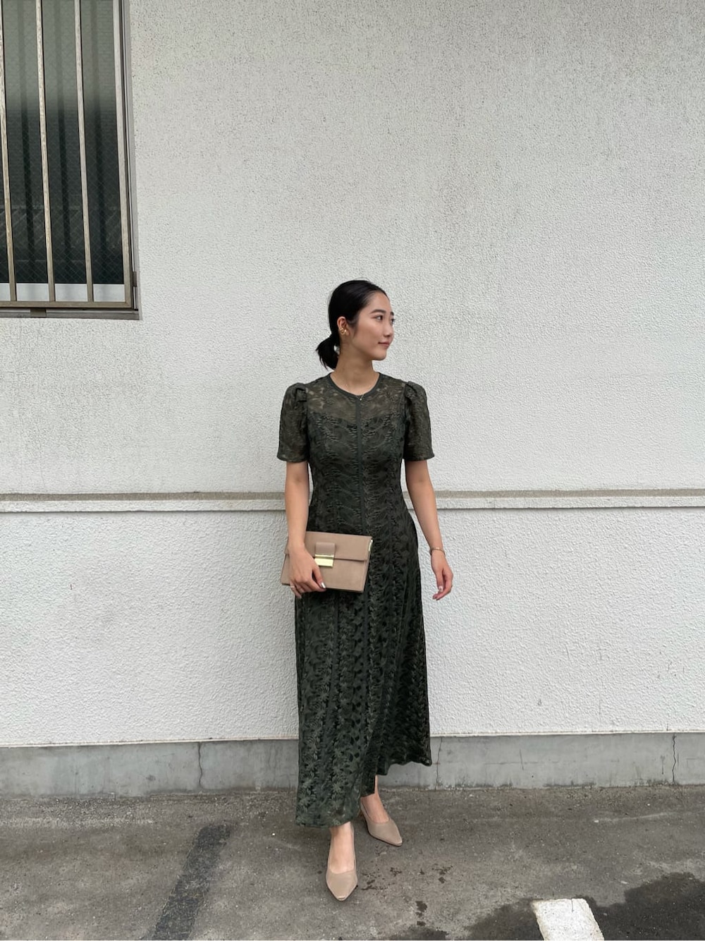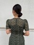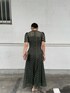こなれた雰囲気のあるレースにパイピング切替を施したワンピース!ウエストから裾にかけてのラインでスタイルアップするように切替を入れています。 深みのあるグリーンがトレンドを押さえつつ、年齢を重ねてもずっと着用できます。 デコルテは透け感があるので透明の紐に変えたり紐なしの下着を着るのがおすすめです! ほどよいフィット感がありAラインのシルエットがとっても綺麗に出るドレスです。