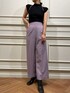 カラーパンツをアクセントにしたコーディネート。トップス、シューズをブラックで統一することでパンツがラベンダーでも甘くならず女性らしい雰囲気できていただけます。 風合いが良く落ち感のあるレーヨン混の素材を使用したシンプルなワイドパンツは、お仕事でもお休みの日でも使いやすい一枚!ジャストウエスト位置に設定することで足のラインを綺麗に見せてくれます。 合わせたトップスは春夏秋と長く着れるノースリーブニット!レーヨン混の柔らかいニット生地は着心地抜群です。フレンチスリーブなのでノースリーブが苦手な方も挑戦しやすい一枚◎。
