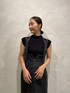 【CIMARRON JEANES×LAGUNAMOON(ラグナムーン)のコラボレーションアイテム】 伸縮性抜群なシマロンのデニムを使用した、ほどよいフィット感のマーメイドシルエットのジャンパースカート!後ろに深めのスリットも入っており歩きやすく、デニム生地だからこそ下着や体のラインを出さずに綺麗に着れます。インナー次第で幅広く着回しを楽しめアイテム◎。サスペンダー付きだと子供っぽく見えるのではないかと思ってしまいますが、ラグナムーンらしい女性らしいシルエットやスリットで肌見せのデザインですので安心。 合わせたトップスは春夏秋と長く着れるノースリーブニット!レーヨン混の柔らかいニット生地は着心地抜群です。フレンチスリーブなのでノースリーブが苦手な方も挑戦しやすい一枚◎ ブーツは秋冬に必需品のスクエアデザイン。クッションが足先まで入っているので歩きやすく、ヒールのデザインがポイントの毎年大人気のアイテムです!