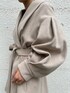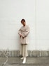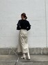 女性らしいモノトーンコーデ。 【ボトムス】ステッチがポイントのレザースカート!体のラインがでないほどよいフィット感のマーメイドラインが嬉しい!とても柔らかいレザー素材なのでは着心地がとっても楽ちん◎。 【トップス】袖部分に異素材をドッキングしたニットは一癖あるデザインなのでシンプルなボトムスとの合わせが可愛い!Vネックのラインで首元を綺麗にみせてくれます。 【アウター】ウール100%ならではの暖かさと軽さの両方が叶うコート。ボリュームたっぷりの袖や後ろタックがありどの角度から見ても可愛いです♡。襟元が大きいので小顔効果も◎。