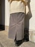 さりげない肌見せが女性らしいニット!どの角度から見ても目を惹くデザインです。 サイドのニット地を結べば立体感が増し、2WAYで楽しめます!レイヤードニットは今シーズン最注目アイテムなのでこれを着るだけでおしゃれ見えします♪ 伸縮性のあるコーデュロイを使用した動きやすさを兼ね揃えたスカート。 すっきりとしたタイトシルエットなのでボリュームのあるトップスと相性抜群!