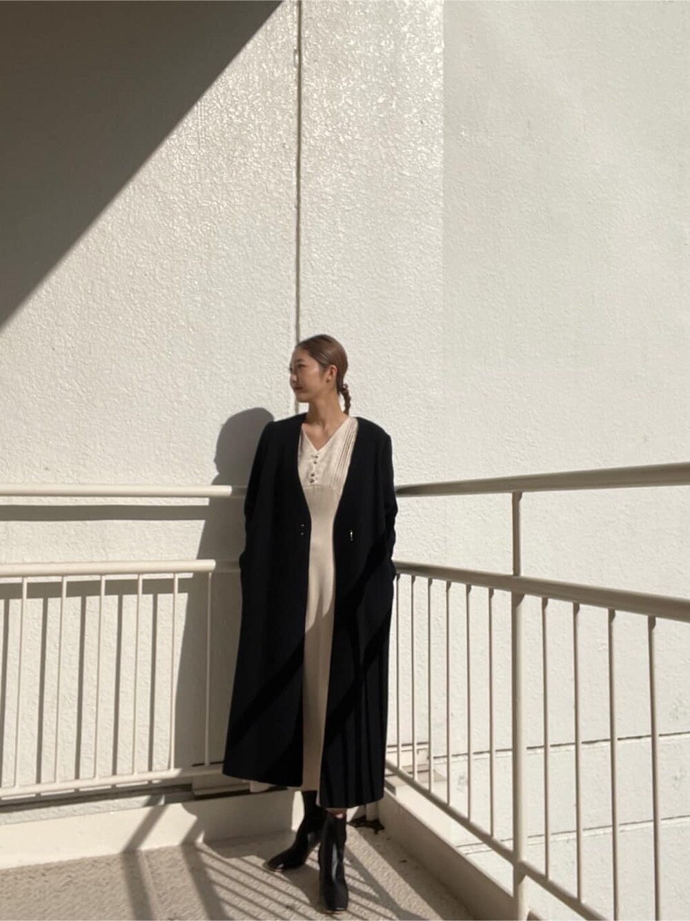今の時期同窓会やお食事などキレイめな場面でもオススメなコーディネートをご紹介! 【ワンピース】光沢感がある上品なワンピース。後ろをリボンで結べるのでバックスタイルも可愛い♡シンプルながらも袖のフォルム感がポイント!!裏地がしっかり着いているのでアイボリーなのに下着も透けず安心して着ていただけます! 【コート】毎年定番のノーカラーコート。ラムウールという子羊の毛を使用しているため軽くて暖かいのが特徴!ウール89%でこんなに軽いのは本当に珍しいです。着るだけですっきりと見せてくれます!急な冠婚葬祭にも◎