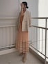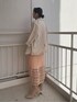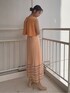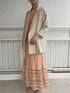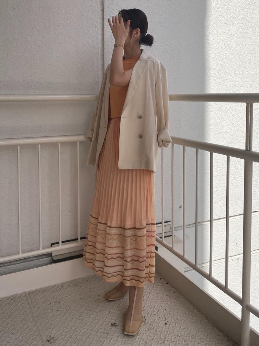 夏先取りのカラーコーデ。【ワンピース】レイヤードデザインなので一枚でおしゃれ見えするワンピース。オレンジの色味が目を惹くアイテムです。背中のカッティングや、スカートの揺れ感、色味など、どこからみても可愛い!とっても軽くサラッとした生地なので真夏にもぴったりです。 【ジャケット】裏地なしのサラッとした生地感のジャケット。ボタンがベージュなのでコーデの邪魔をせずどんなスタイルにも羽織れるアイテム。 【ブーツ】メッシュブーツは春夏に大活躍するアイテム!甘すぎる雰囲気が苦手な方はブーツで足元をしめるのがおすすめです。長時間歩いても疲れない◎。