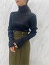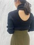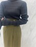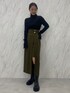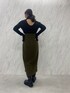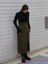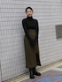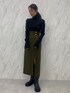 ダークトーンでまとめたモードコーデ。 【トップス】生地感がテロっとしていて首詰まりが全く気にならないニット。下着が見えないラインのバックカットなので安心して着用できます。着心地も抜群で、全体に入っているリブが体のラインを綺麗に見せてくれます。 【スカート】金ボタンや深みのあるグリーン、程よい肌見せがトレンドをおさえていてお洒落に見えるアイテム。ロングブーツ合わせがとにかく可愛いです。ハイウエストデザインなので脚長効果も! 【ブーツ】今年もトレンドのロングブーツ!!とても軽く、厚底デザインなので履くだけで脚長効果があるブーツ◎雨の日にレインブーツとして使っているスタッフもいます!